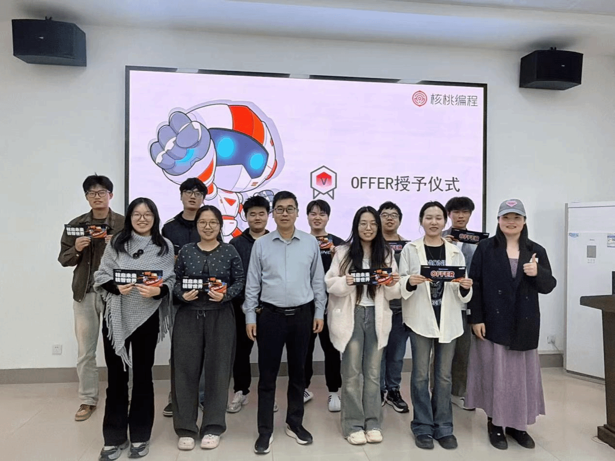 与核桃编程联合举办的订单班结营仪式顺利举行,为期两周的专项定向就业培养工作圆满收官。90比分网