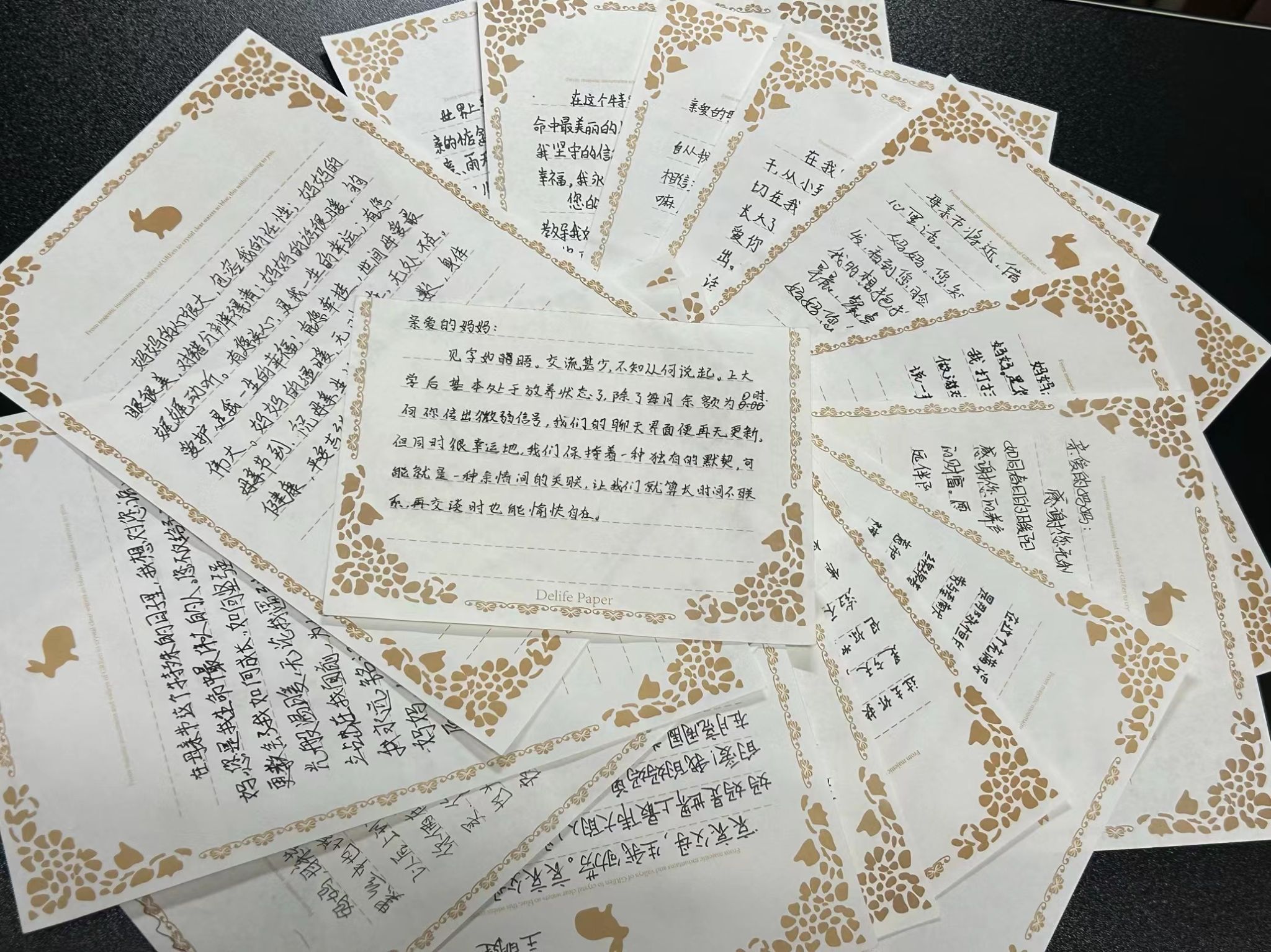 准备的精美心愿卡上写满对妈妈的祝福。“妈妈,您辛苦了”、“您陪我长大、我陪您变老”、“妈妈,愿您永远健康幸福”,一句句感人至深的话不禁让人潸然泪下。同学们借助一张张小小的心愿卡,向母亲表达了心底想说的话语,用美好的祝福传递自己的反哺之情。