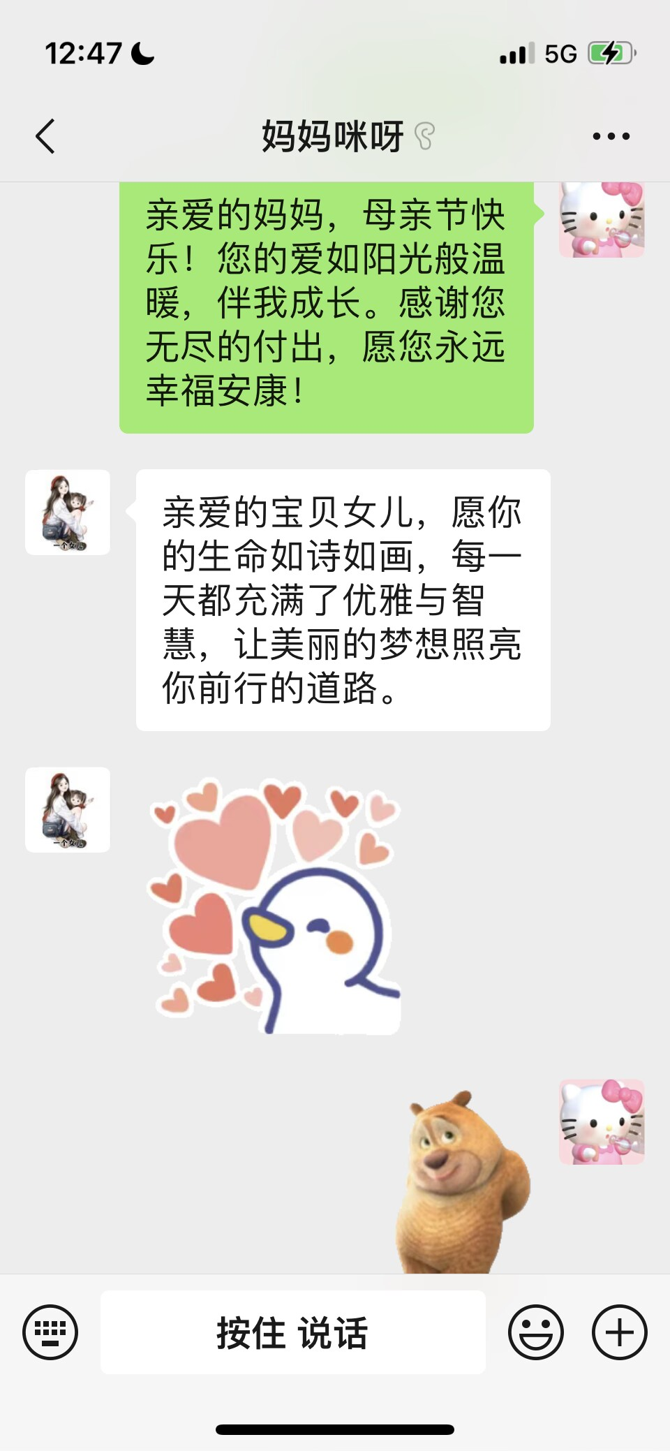 开展了“妈妈我想对你说”线上云祝福活动。同学们踊跃参与,通过录制短视频、向母亲发送祝福短信等形式,将自己想说、想表达的以及平时羞于说出口的话利用此次机会表达出来,向母亲送上问候与祝福。同学们纷纷表示此次活动唤醒了他们埋藏在内心深处的感恩情怀,他们感激母亲为自己所做的一切,并表示在学习上会奋发进取,努力提高自我素养,能以实际行动来报答母亲的深深养育之恩。