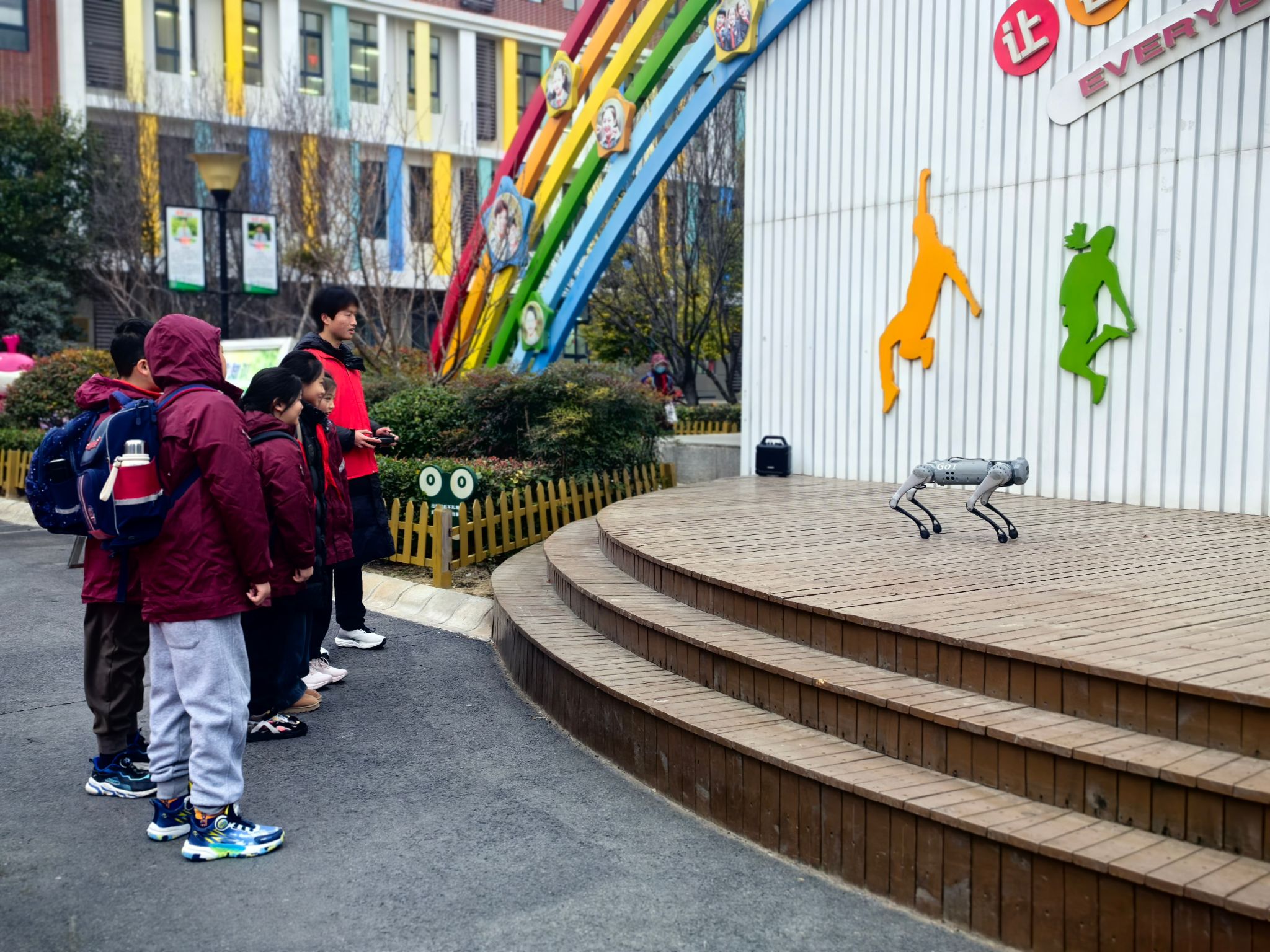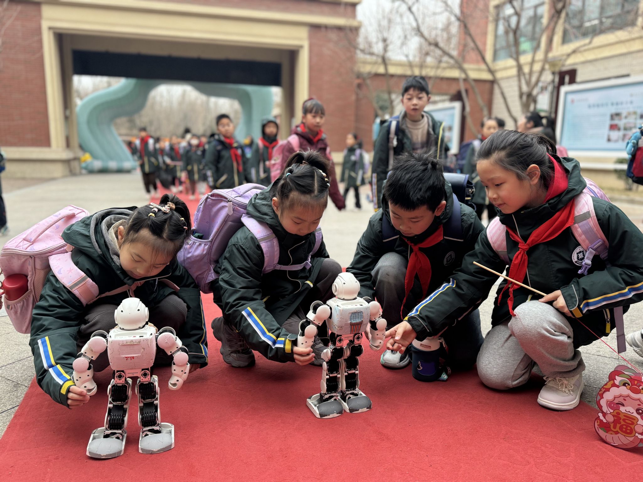 活动中,志愿者们带来了精彩的机器狗和机器人展演。憨态可掬的机器狗在志愿者的操控下,灵活地完成了一系列高难度动作,引得现场惊叹连连;而灵巧的机器人则伴随着动感的音乐,为师生和家长们献上了一段精彩的舞蹈表演,其精准的动作和灵活的舞姿赢得了阵阵掌声。随后,志愿者们结合展演内容,用通俗易懂的语言和生动形象的案例,讲解了人工智能的基本概念、发展历程以及应用领域,并分享了在河南工业大学求学和自身学习的经历和体会。