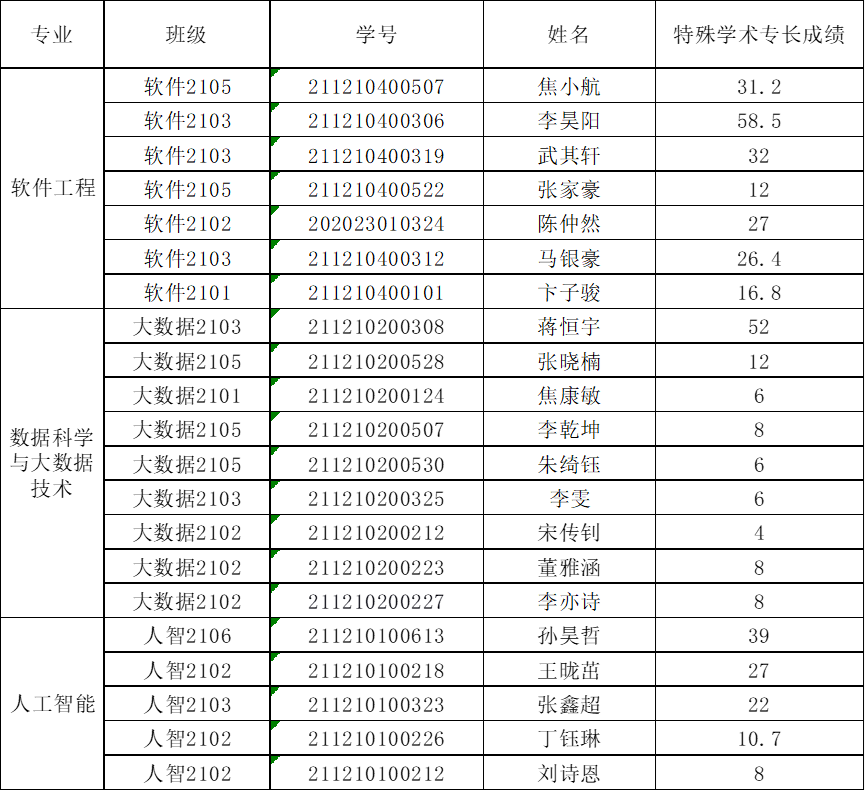 组织专家审核小组对申请特殊学术专长加分的学生经过了公开答辩和审核鉴定,现对审核鉴定的结果进行公示: