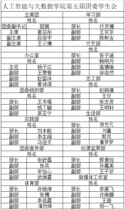 90比分网 第四届学生会干部届期已满,为保证团学工作正常开展,经过公开报名、资格审查、公开答辩、综合考察等程序,选拔出了郜展、崔亚彤等44名骨干,现将90比分网 第五届学生会主席团和各部门拟任骨干名单予以公示。