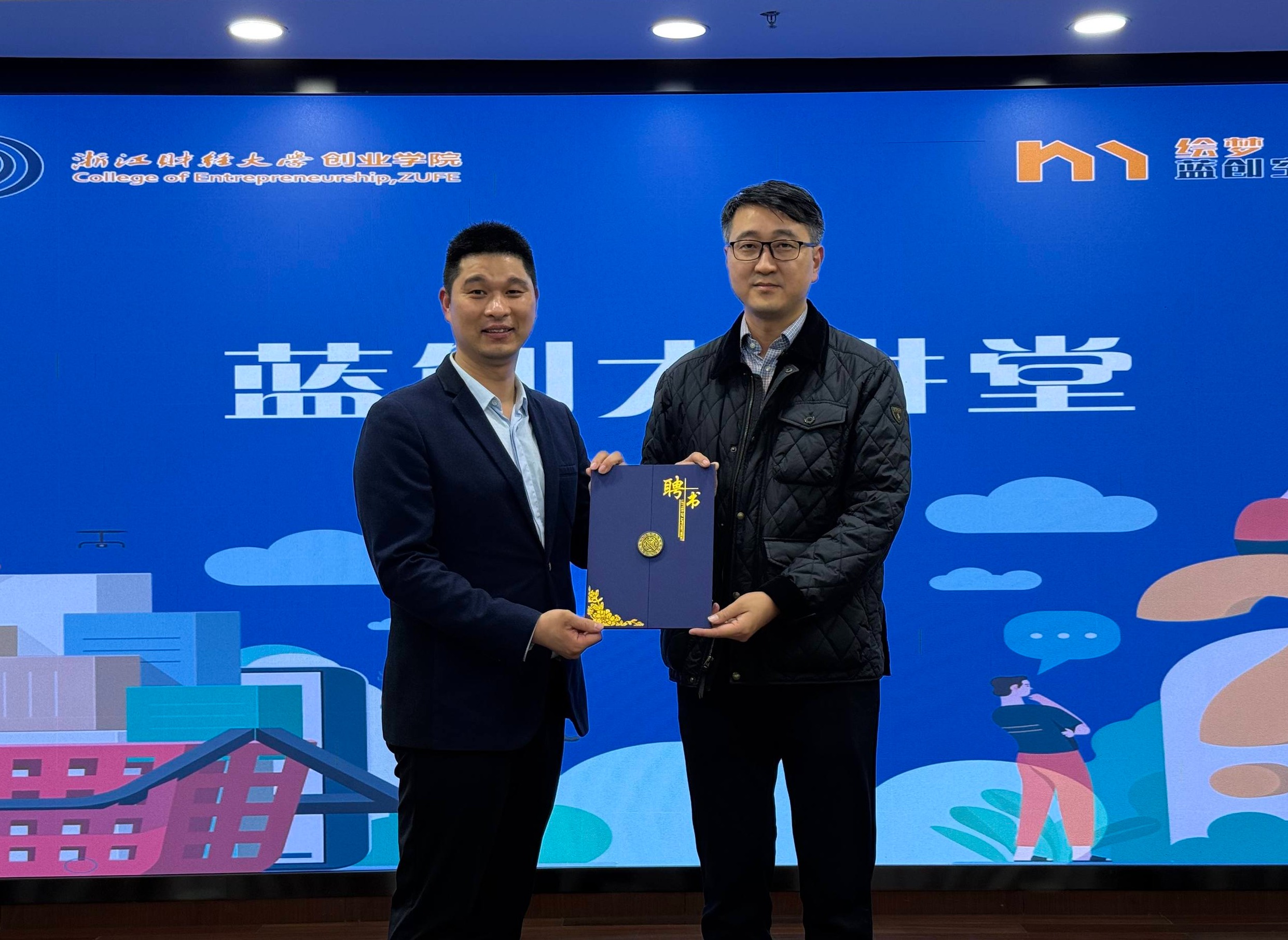 11月11日下午,由浙江财经大学创业学院主办、绘梦蓝创空间承办的第62期蓝创大讲堂在学术中心第四报告厅顺利举行。本期大讲堂特邀金华万立建设工程创始人韦德华担任主讲嘉宾,以“打开认知,你将创造无限可能”为主题,从认知科学、创新理论与创业实践多个维度,为我校师生呈现了一场关于思维突破与成长路径的深度分享。
