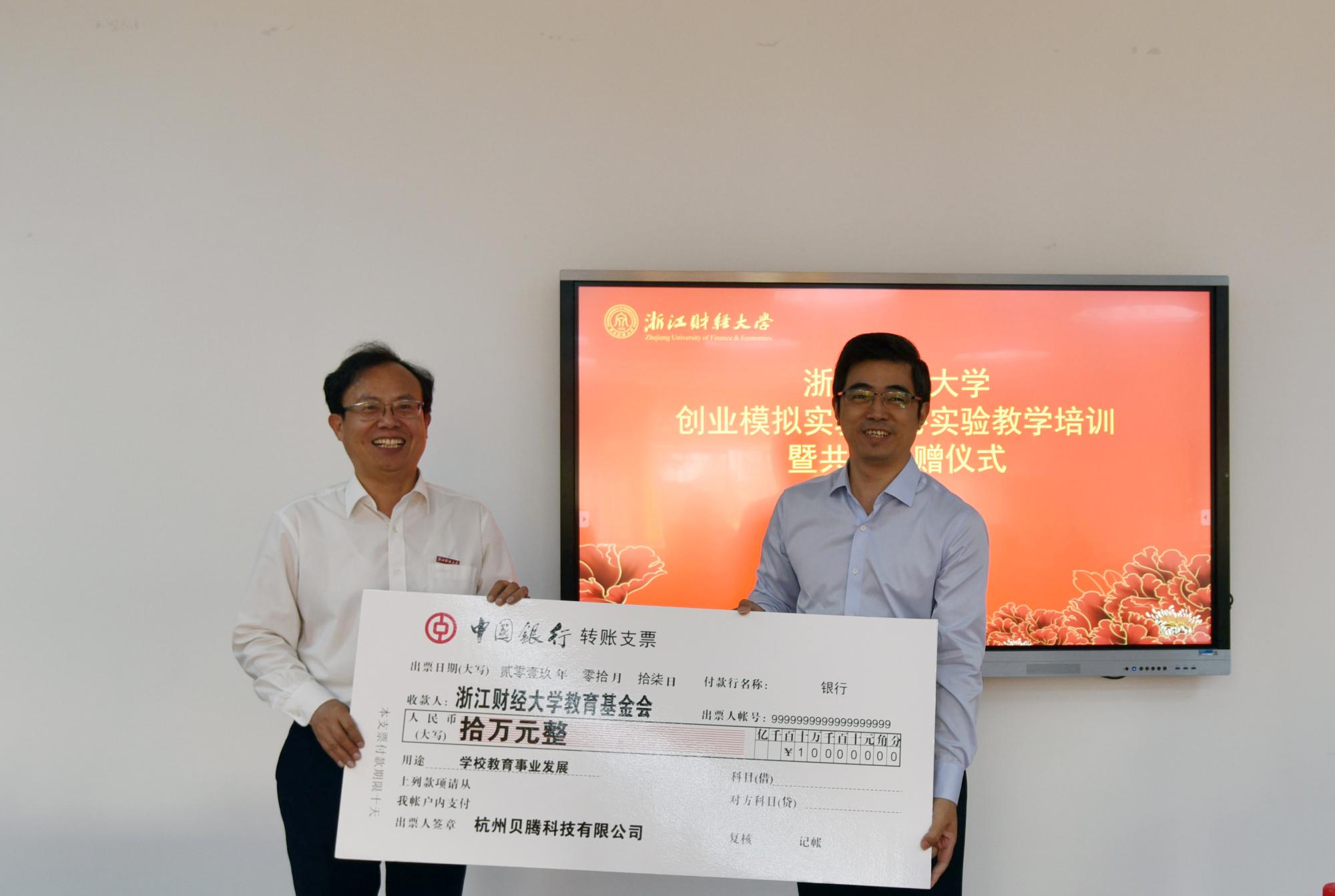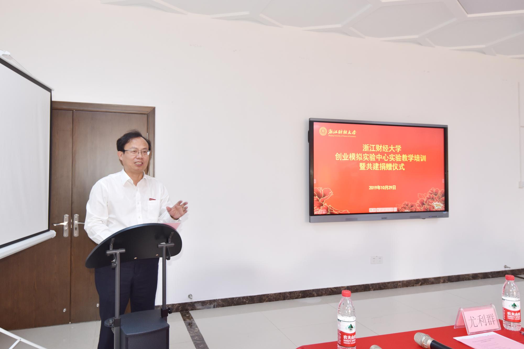 2019年10月29日下午,浙江财经大学创业学院举办的创业模拟实验中心实验教学培训暨共建捐赠仪式在创业学院207实验室会举行。浙江财经大学党委副书记黄建新、杭州贝腾科技有限公司董事长黄林、上海创狐软件科技有限公司总经理朱营、浙江财经大学创业学院院长尤利群、副院长吴诗启、沈鑫泉以及各学院学生代表参加了本次教学培训暨捐赠仪式。