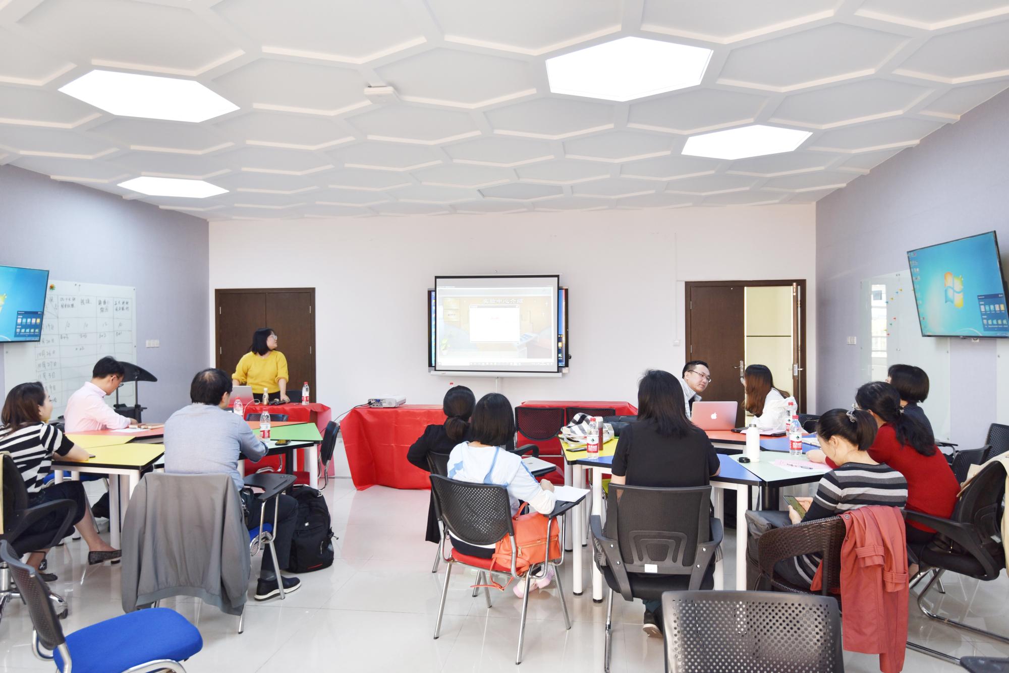 捐赠仪式结束后,创业模拟实验中心实验教学培训在创业学院207实验室继续开展,贝腾公司及创狐公司的培训师向课程老师们详细介绍软硬件操作。