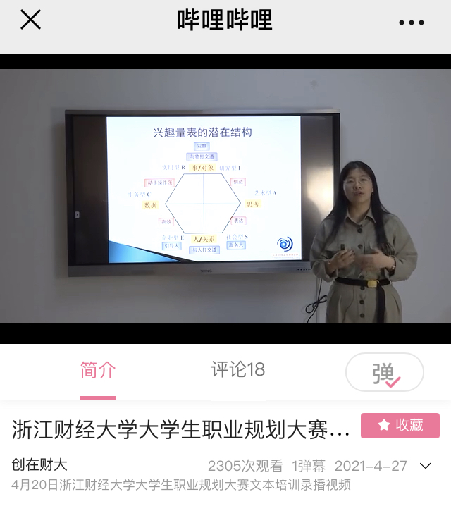 为了加强同学们对职业生涯规划大赛的了解,积极动员学生参加校职业生涯规划大赛,4月27日下午,创业学院邀请浙江大学蔡云老师为我校学生开展职业规划大赛文本培训。本次培训以视频录制形式进行,由“创在财大”视频号及B站发布并在评论区答疑解惑,近5600多名同学参加了本次培训。