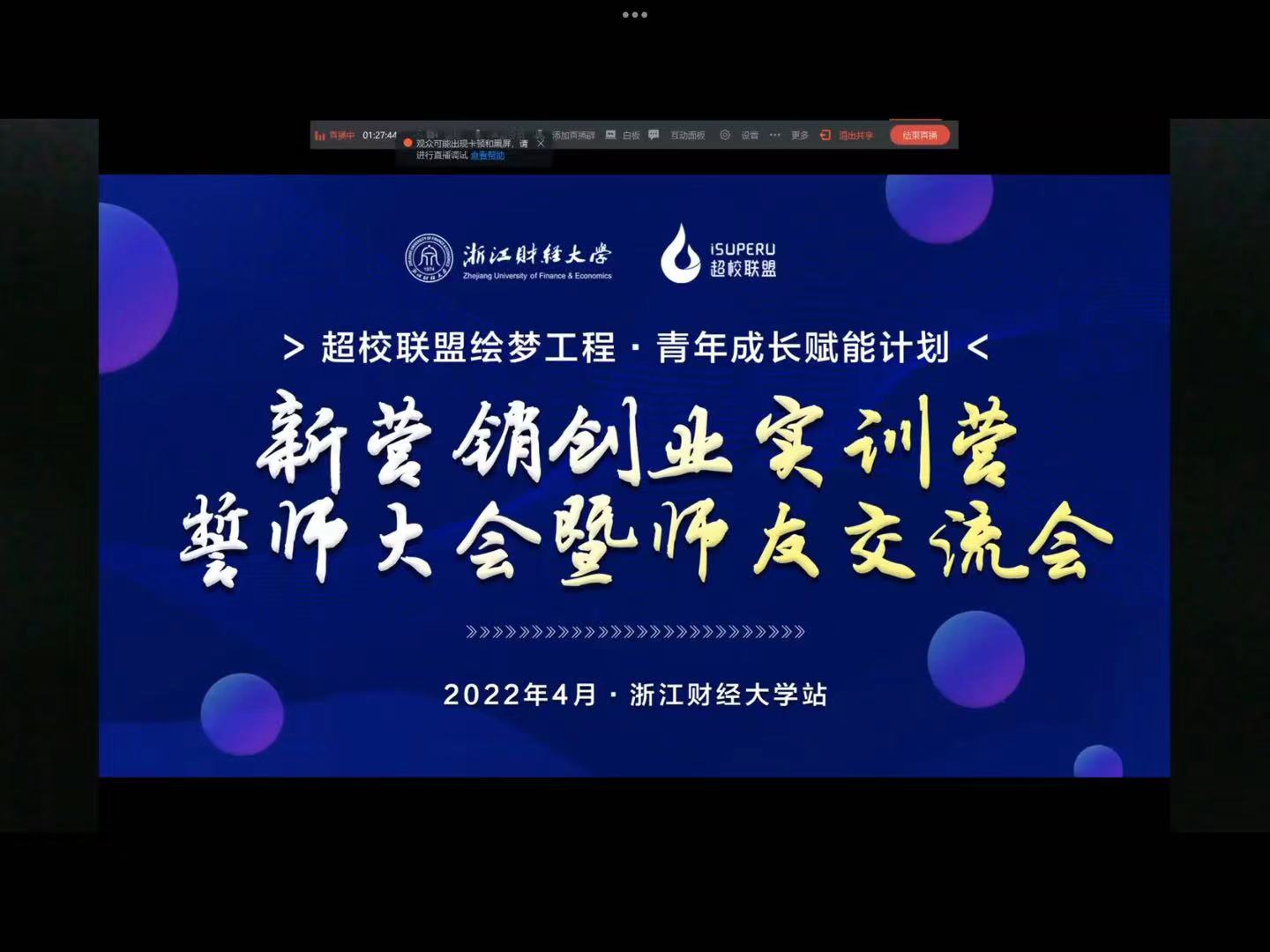 4月7日下午,浙江财经大学第3期新营销创业训练营师友交流会在线上成功举办。新营销创业训练营是以“超校·绘梦赋能工程生态平台”为基础,提供青年创业实践互联网店铺系统、商品供应链库、营销活动资源,为参与实训的青年大学生提供“零成本、零风险”的创业创新实训机会的赋能项目。本次活动有十支队伍进行了项目展示,大家就项目展开了详细的交流讨论。