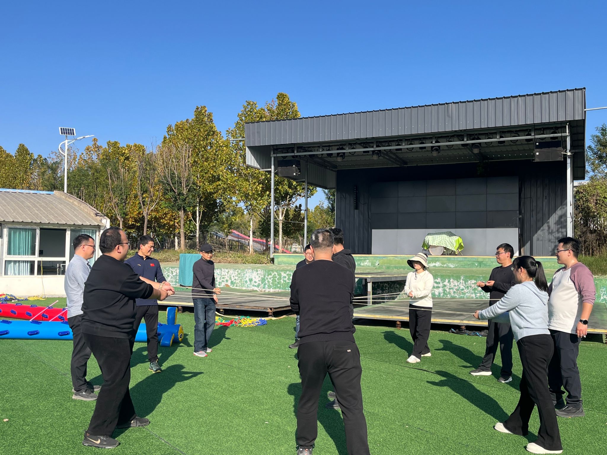 随后,教职工们前往洛阳拓展训练基地开展“团结协作 凝心聚力”主题户外素质拓展活动。在专业教练的指导下,各支队伍先后完成了“教练说”“对撞球”“不倒森林”“同心鼓”“神笔马良”等训练项目。活动中,队员们团结协作、默契配合,既有激烈的思想碰撞,也有温馨的互助瞬间。在"同心鼓"项目中,队员们默契配合,精准控制鼓面节奏;在"神笔马良"环节,大家齐心协力,共同书写育人篇章;"不倒森林"考验着团队的协调一致,"对撞球"则展现出教师们的活力与激情。活动现场气氛热烈,欢声笑语此起彼伏,在秋日暖阳下勾勒出一幅生动和谐的团队画卷。