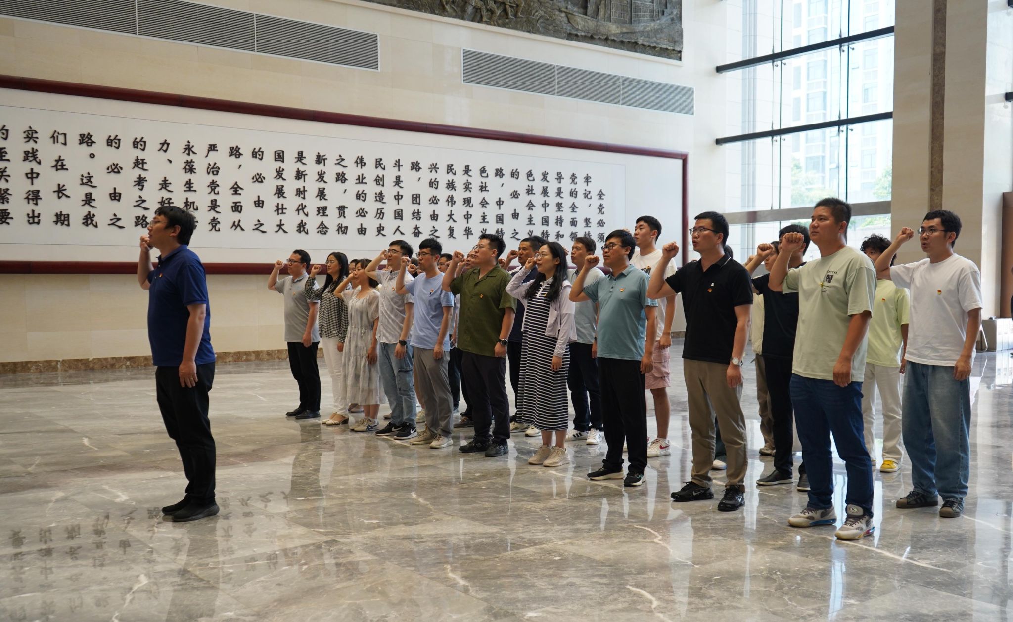 党委副书记、纪委书记赵志洋领誓,同志们高举右拳,重温入党誓词,重忆入党初心。参观中,在讲解员的引导下,同志们依次参观了中国古代廉政文化展、中国共产党党风廉政建设展、新时代河南全面从严治党成果展三大主题展厅,以及中国共产党人的精神谱系展、中国共产党人的家风档案图片展。生动的图片和典型腐败案例让大家深受触动,对革命先辈的优良传统、务实作风,以及我党廉政文化的深厚底蕴有了更深入的认知。
