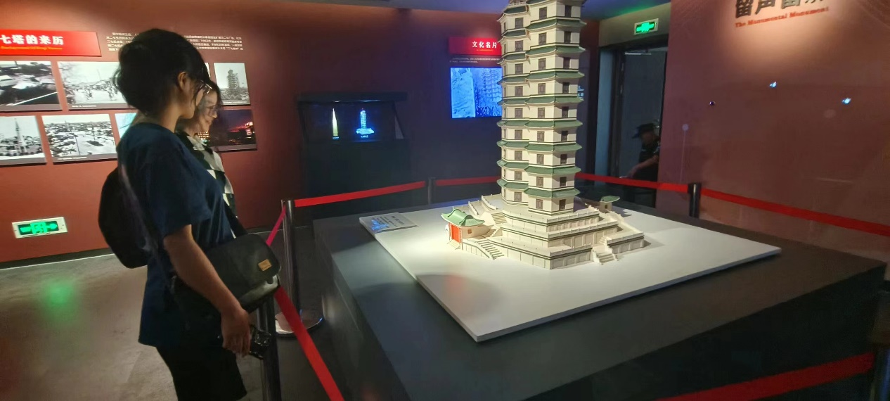 实践团成员观看二七纪念塔模型