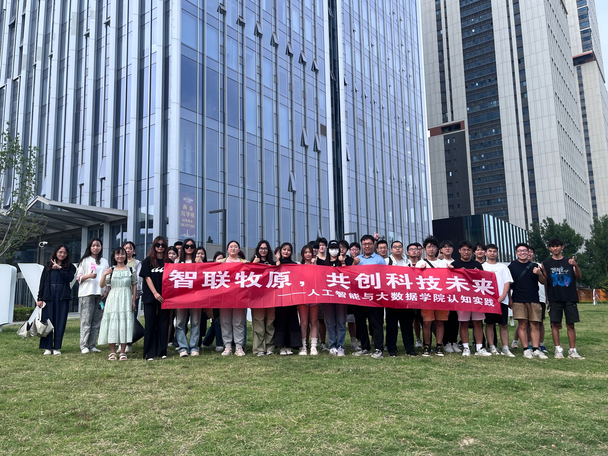 的40多名学生在辅导员张茂清和科大讯飞职业导师王丛丛的带领下,参观了位于郑州的牧原集团研发中心。