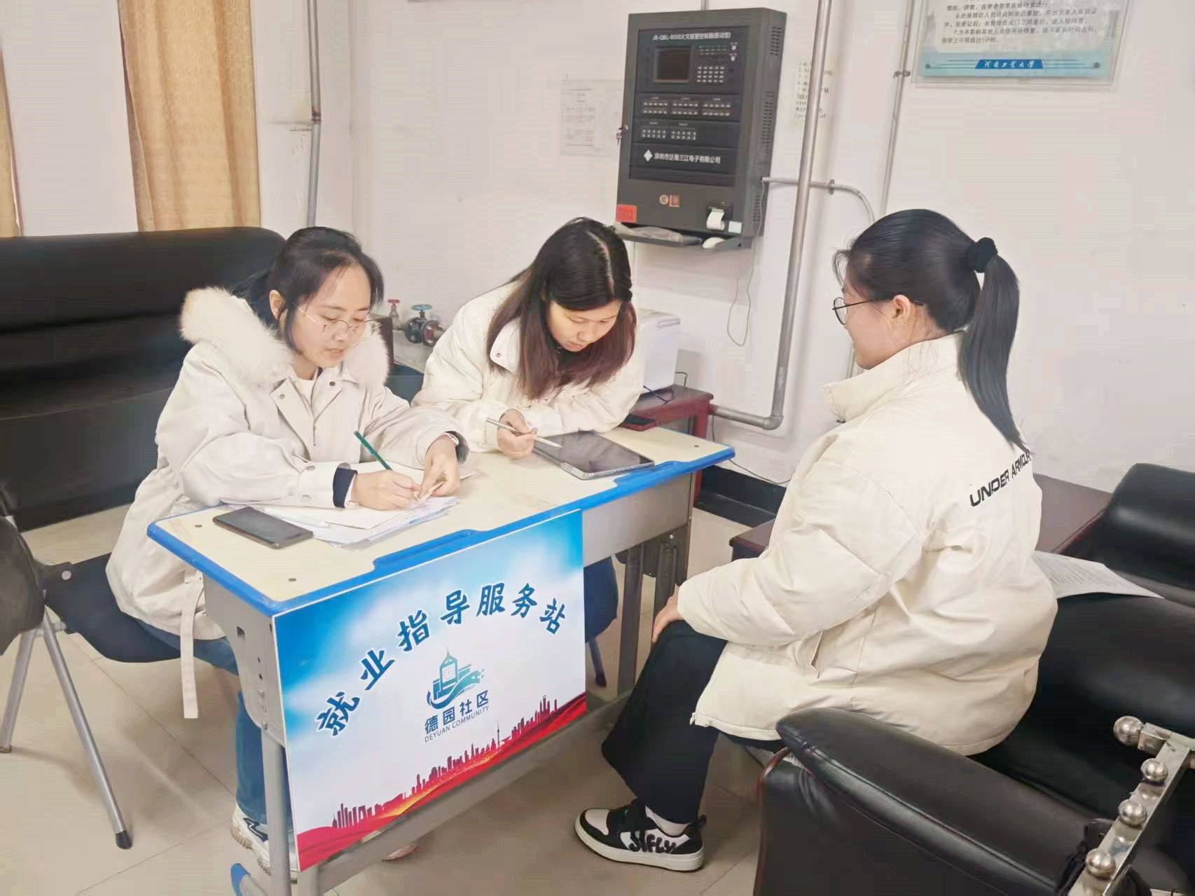 在C02、D03宿舍设置了“德园社区”就业服务站,每周固定时间为学生进行简历修改、面试指导等1对1服务,由点到面开展了精准的就业辅导。