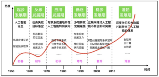 到目前为止,人工智能发展的历程大致可以分为如图所示的6个阶段: